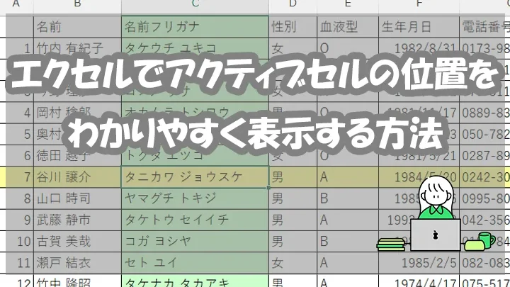 - アクティブセルの位置を見失う: 色付けやウィンドウ枠の固定で解決