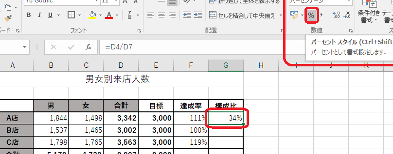 Excelでパーセンテージを出すにはどうすればいいですか?